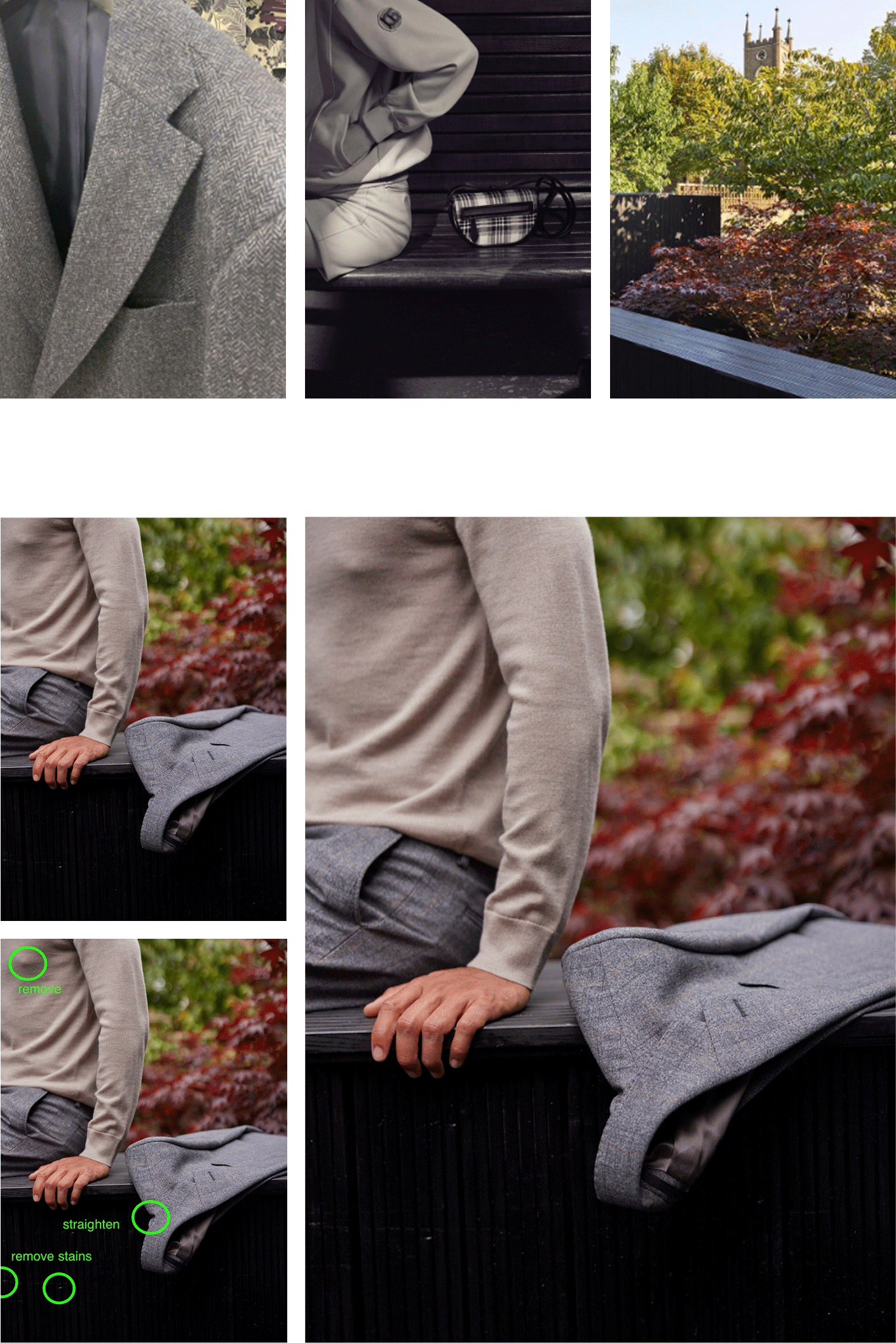 Neutral interiors and city textures frame the product